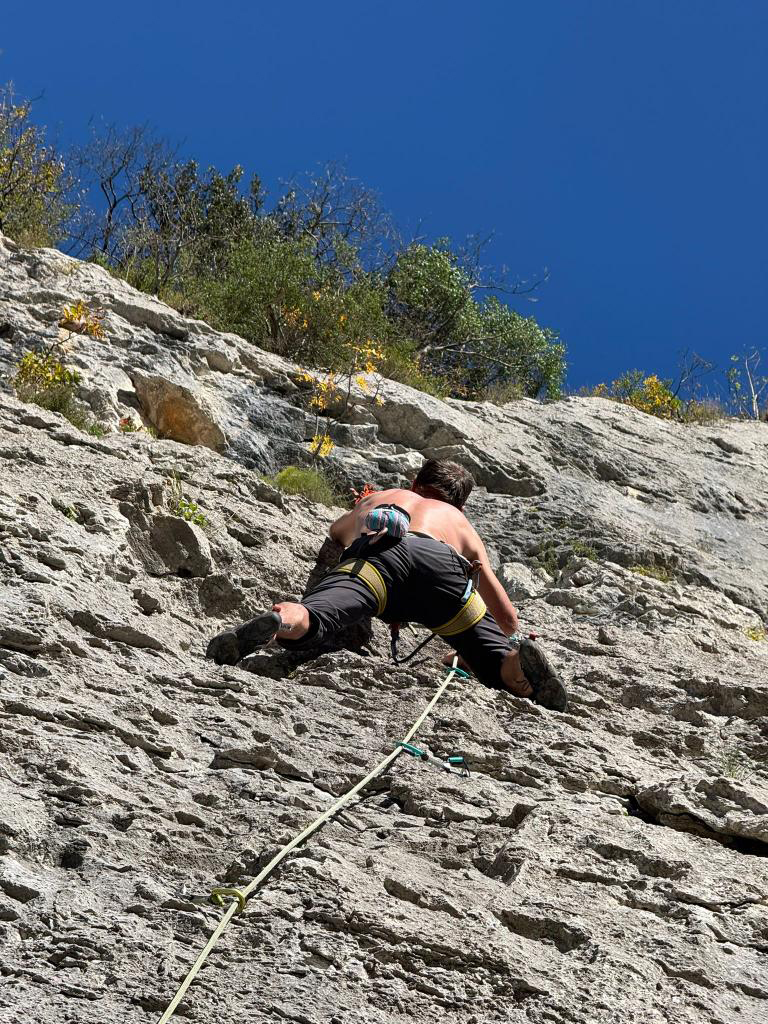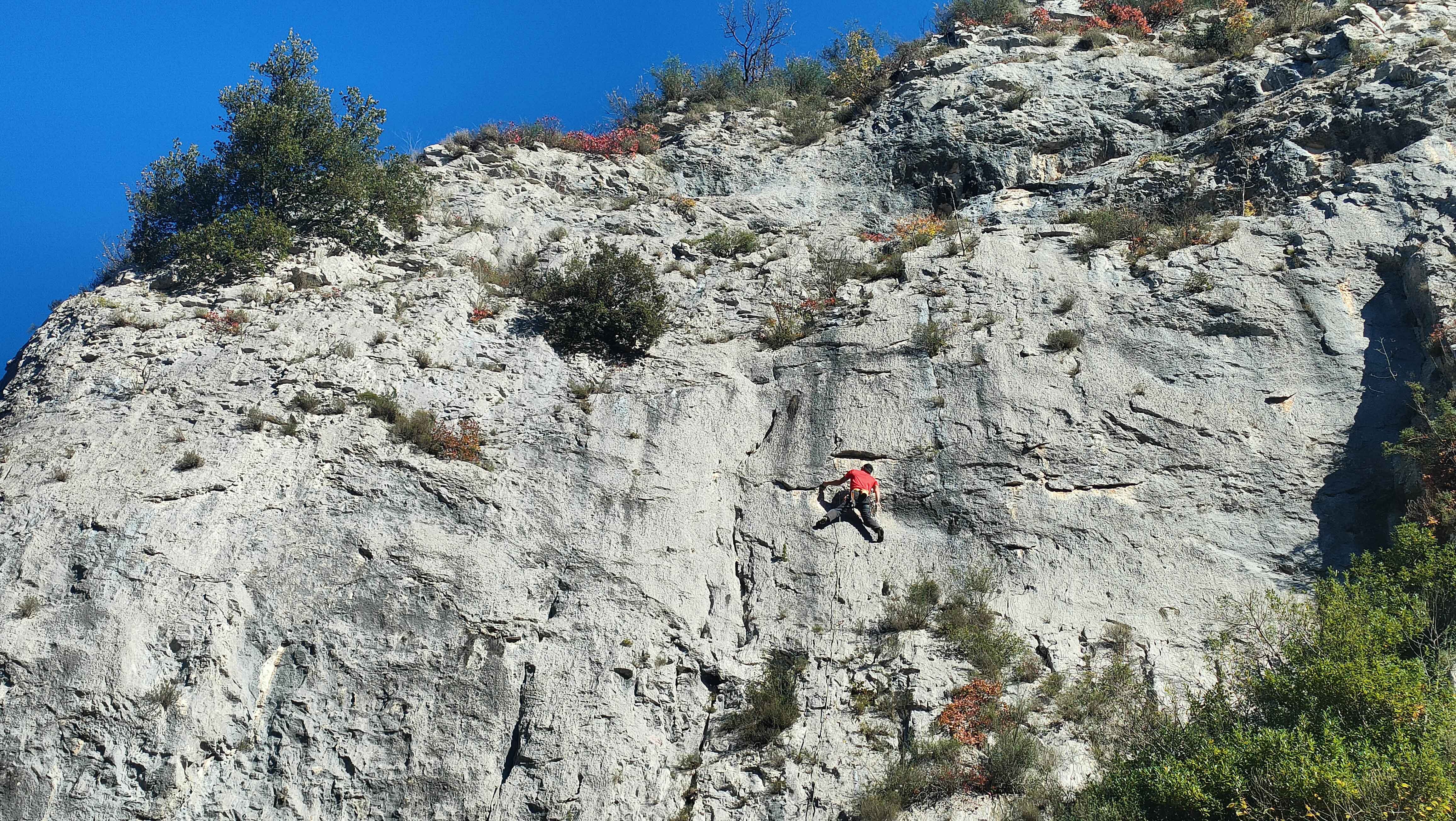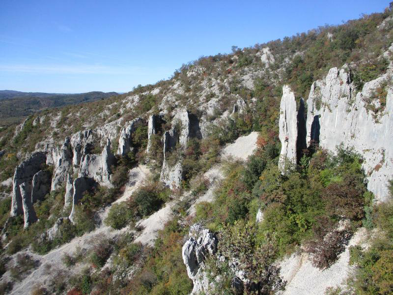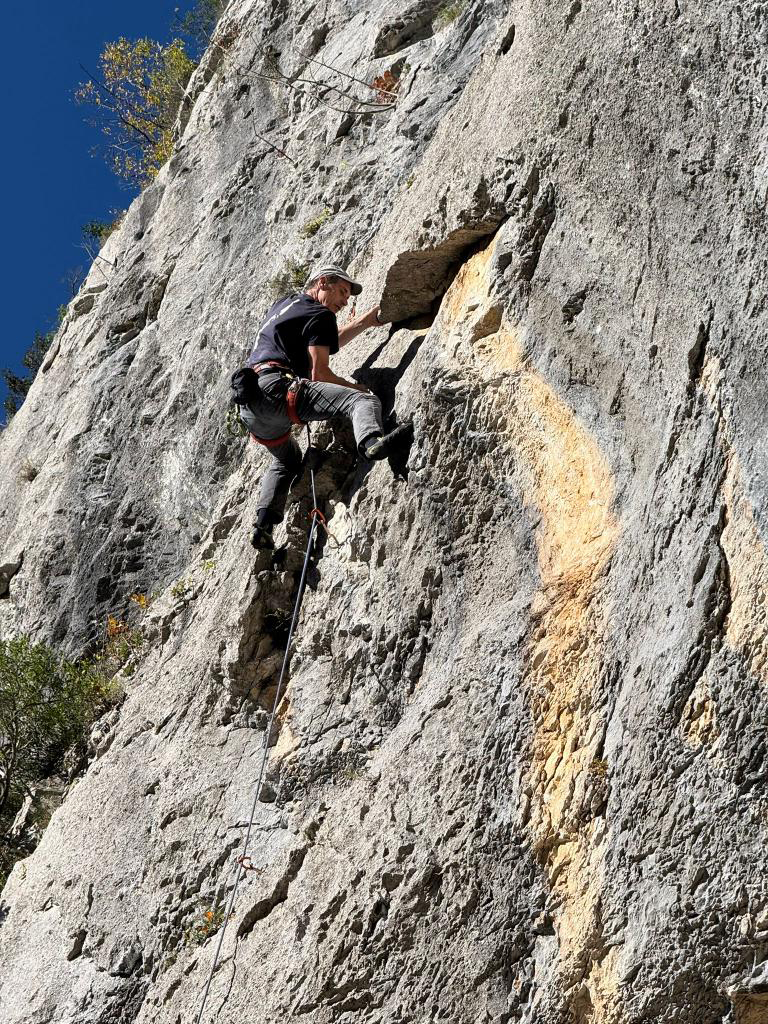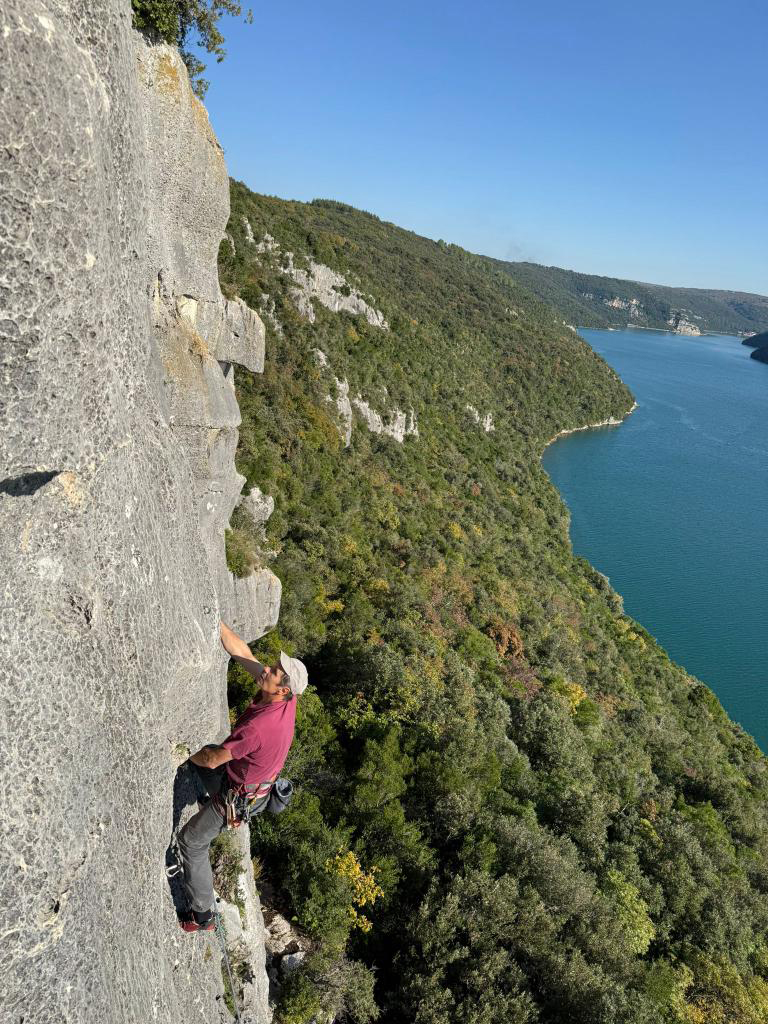 V úterý jsme si pro své konání zvolili oblast Buzetski kanjon, sektor Pengari. V cestě Koke iz Loke 6a testuji, které z mých lezeček si po deseti letech ve skříni udržely top formu. Závěr- žádné ! Budu to muset holt dohnat jinými kvalitami.