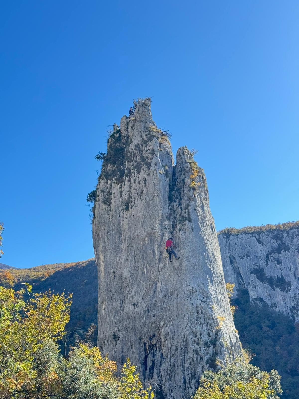 My s Bleskem vybrali 50-ti metrovou klasiku na věž Veliki toranj- Commici bird 6a od legendárního dolomitského lezce.