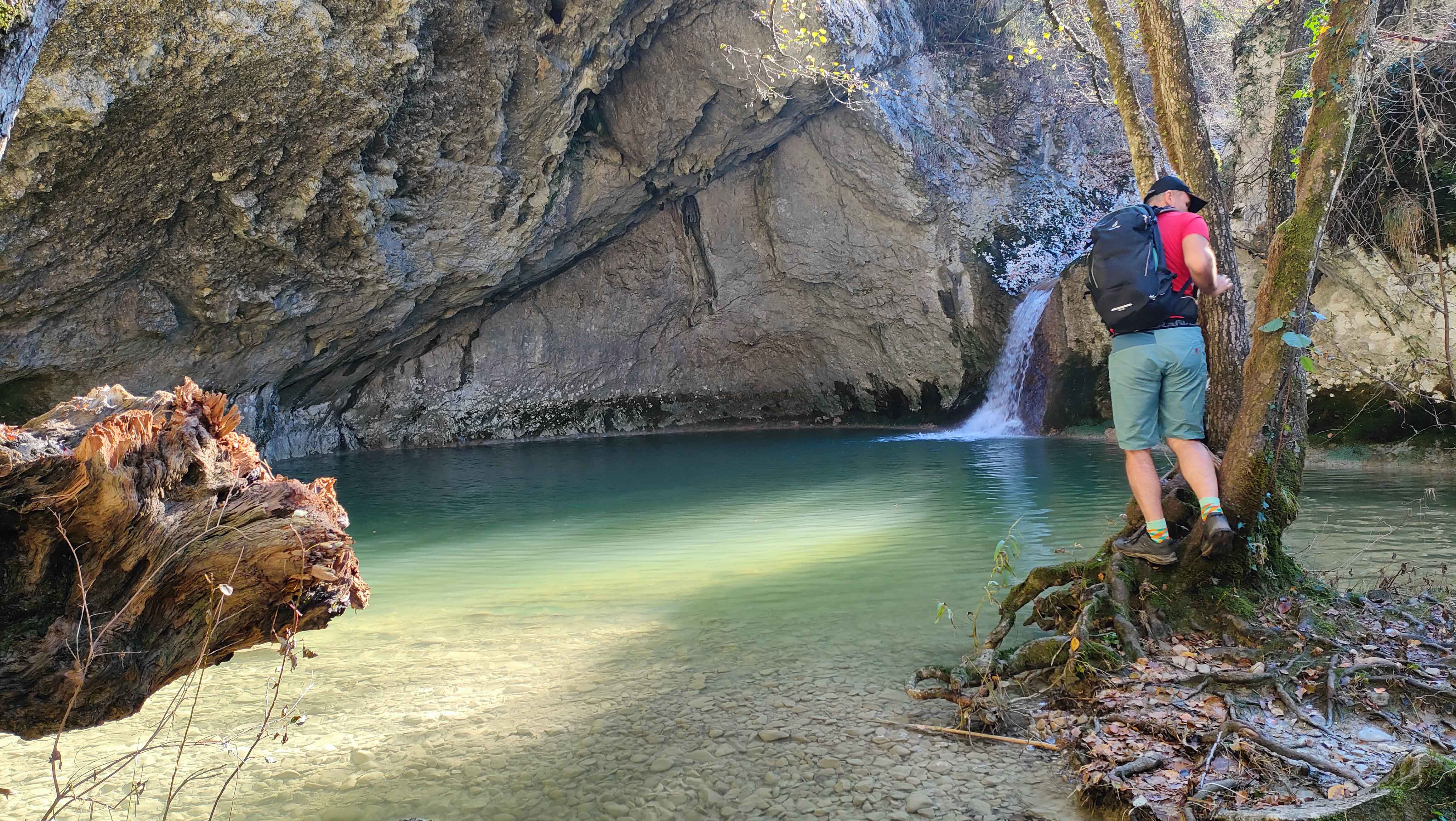 ...pak 10 km trail soutěskami. Pauza v amfiteátru Malé Peči.