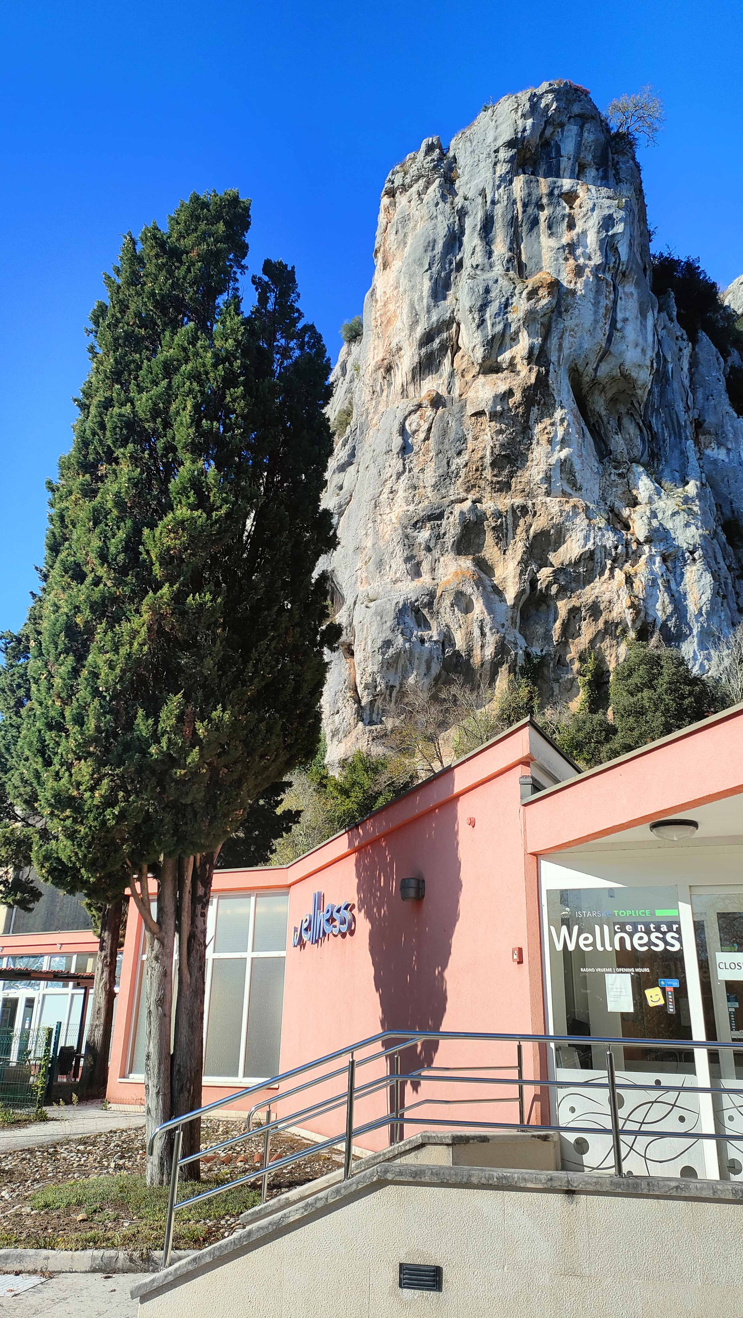 V sobotu, byť po polorestdayi, potřebujeme lázně. Navštěvujeme oblast Istarske toplice. 3-délkový masív pro lezení uzavřen, lázně zkrachovaly.